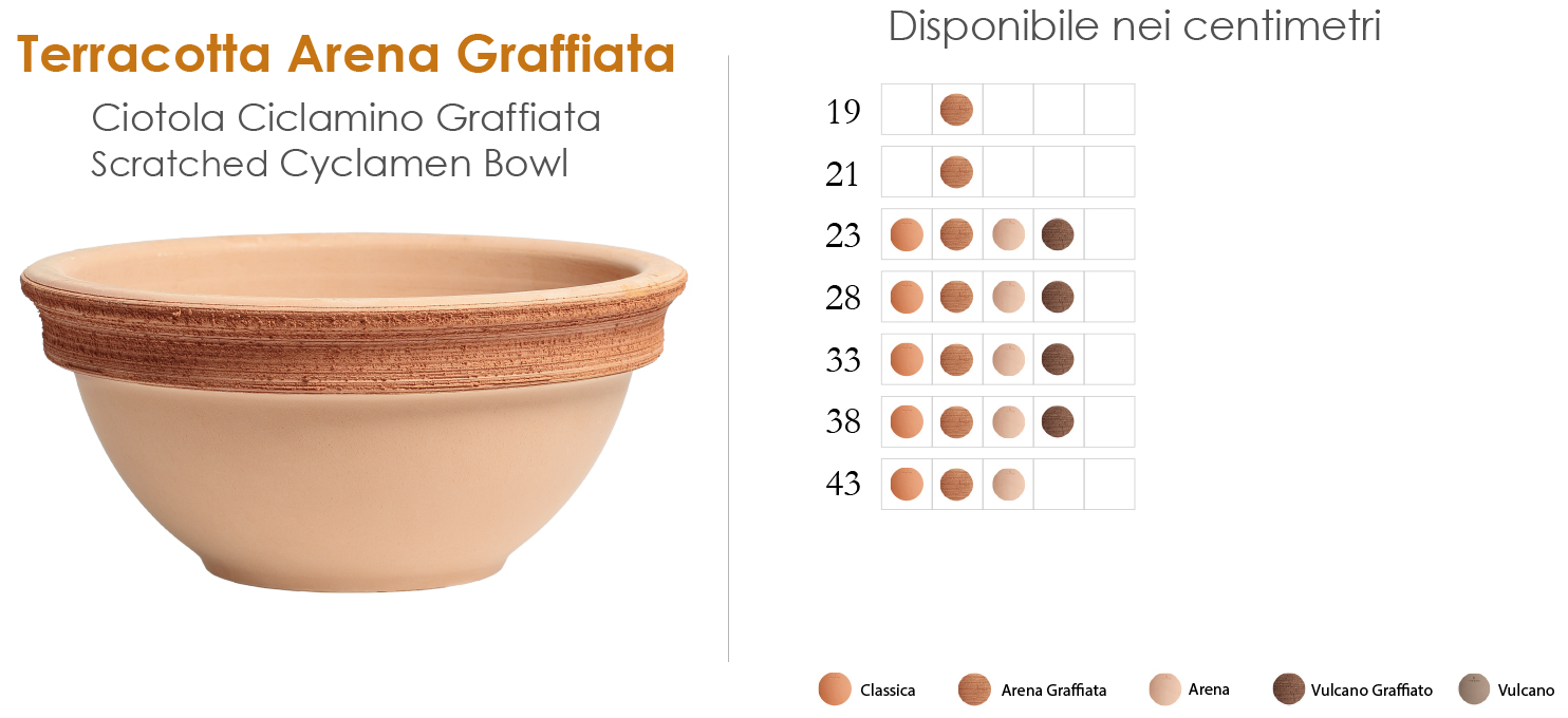 | DIAMETRO | COD. ART. | ALTEZZA cm | LARGHEZZA cm | PESO kg | CAPACITÀ L | SOTTOVASO |